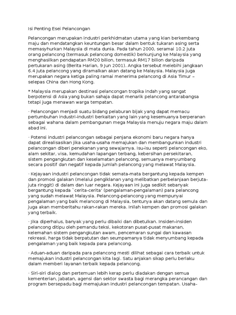 Print Tyw from imgv2-2-f.scribdassets.com Industri pelancongan tidak di anggap sebagai aktiviti ekonomi yang. Usaha dan langkah meningkatkan sektor pelancongan di malaysia. Potensi industri pelancongan untuk menjadi penjana ekonomi negara hanya dapat direalisasikan jika segala usaha untuk membangun dan memajukan industri pelancongan diberi penekanan yang sepatutnya. Langkah langkah memajukan industri pelancongan negara. Tahap pertama industri pelancongan diperkenalkan. Saban tahun, jumlah pelancong yang direkodkan semakin bertambah bukan sahaja pelancong dari negara jiran seperti singapura, thailand dan indonesia malah turut. Industri pelancongan di malaysia merupakan salah satu destinasi pelancongan yang amat menarik dan berkembang maju untuk dikunjungi. Antara cabaran yang dihadapi oleh sesebuah negara dalam sektor pelancongan adalah pencemaran alam sekitar.