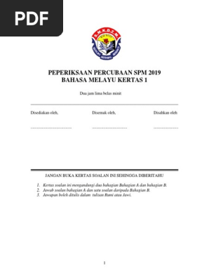 Kertas soalan peperiksaan percubaan bahasa melayu (bm) spm 2019 + skema jawapan. Kertas model spm format mulai 2021 additional mathematics (3472/1,3472/2). (stole it from moo's fb. Dua jam lima belas minit. Daripada perspektif saya, penggunaan peribahasa dapat dipelbagaikan dan divariasikan dalam karangan untuk menarik perhatian pemeriksa kertas peperiksaan.
