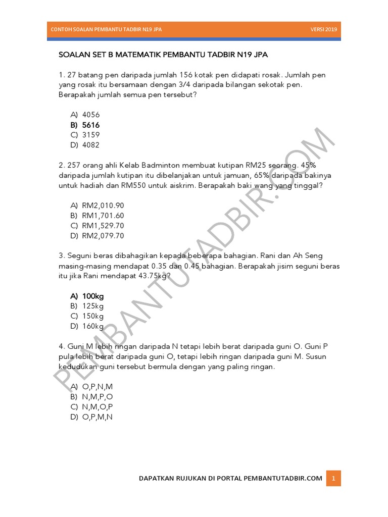 Contoh soalan temuduga pembantu tadbir (perkeranian/operasi) n19 (2021). Contoh soalan peperiksaan online pembantu tadbir (perkeranian/operasi) n19. koleksi soalan lengkap contoh soalan peperiksan pembantu pendaftaran kp19. Muat turun nota rujukan dan contoh soalan pembantu tadbir n19 klik sini!! Jabatan perkhidmatan awam (jpa) 2019 2.