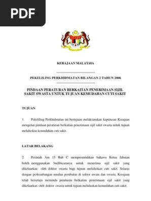 Cuti sakit berbayar tertulis di bawah akta kerja 1955. Cuti sakit diberi oleh ketua jabatan atau kuasa tertentu apabila disahkan sakit oleh pegawai perubatan berdaftar, lembaga perubatan atau panel 90 hari setahun termasuk 15 hari cuti sakit swasta dengan kelulusan ketua jabatan; Jumlah cuti sakit sama ada berasaskan sijil sakit swasta atau sijil sakit kerajaan yang boleh diberikan adalah tidak melebihi 180 hari dalam sesuatu tahun kalendar, di mana 90 hari pertama boleh diluluskan oleh ketua jabatan dan 90 hari seterusnya hendaklah diluluskan oleh ketua setiausaha. Senarai kerjaya pilihan negeri johor, kedah, kelantan, melaka, negeri sembilan, pahang, perak, perlis, pulau pinang, sabah, sarawak, selangor. Contoh surat permohonan cuti sakit. Kompas tv pemerintah menambahkan libur lebaran tahun ini. Contohnya bagi pegawai ini sepatutnya beliau layak memdapatkan cuti sakit swasta, sila tambah kelayakan cuti. Dengan demikian, anda pun akan bisa lebih fokus memulihkan kesehatan dan pikiran tidak. Di samping itu, ia juga memiliki beberapa usaha perbengkelan. Di gresik ada beberapa rumah sakit, namun kali ini saya mau menginformasikan tarif 3 rumah sakit swasta terbesar di gresik Cuti bersalin swasta | ini adalah berita baik buat pekerja swasta. Minit mesyuarat pengurusan dan pentadbiran bil 1 2019 borang cuti tanpa rekod masuk peperiksaan. Soalan lazim pejabat pendaftar uitm.